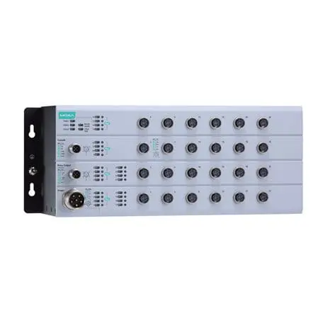 L2 Managed Ethernet switch, 16 * 10/100BaseT(X) with 802.3at PoE+ and 8 * 10/100BaseT(X) M12 connectors, power input 24 – 110 VDC, -40 to 75℃ operation temperature, conformal coating model