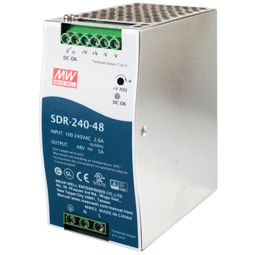 240W/5A DIN-Rail 48VDC power supply with universal 88~264VAC / 124~370VDC input