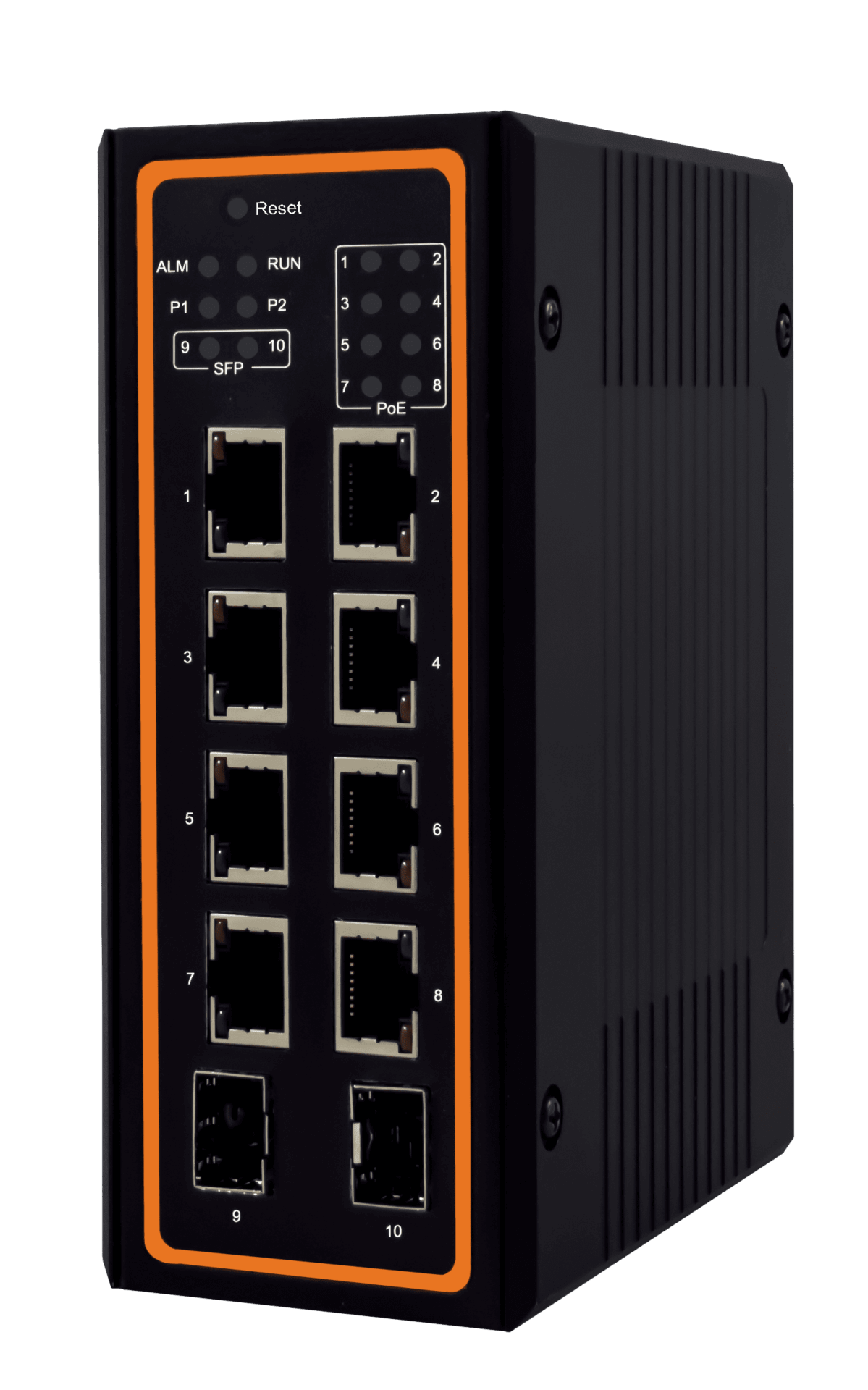 10-Port Lite-Managed Gigabit Ethernet Switch with 2 100/1000 SFP and 8 PoE ports, 12~48VDC PoE