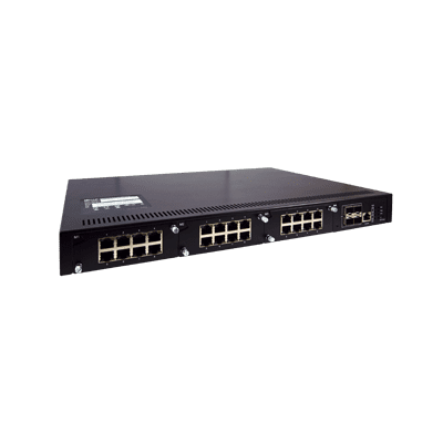 L2 Switch Core, 4x1G SFP Uplinks, 3 Module Slots, 1×100~220VAC, 1x 48~57 VDC input; 2x 48~57 VDC PoE power input